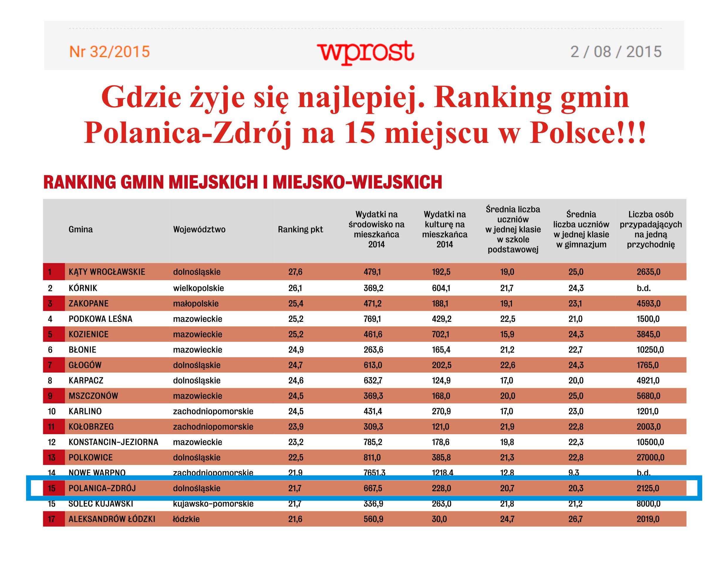 Polanica na 15 miejscu w Polsce!!!