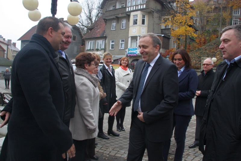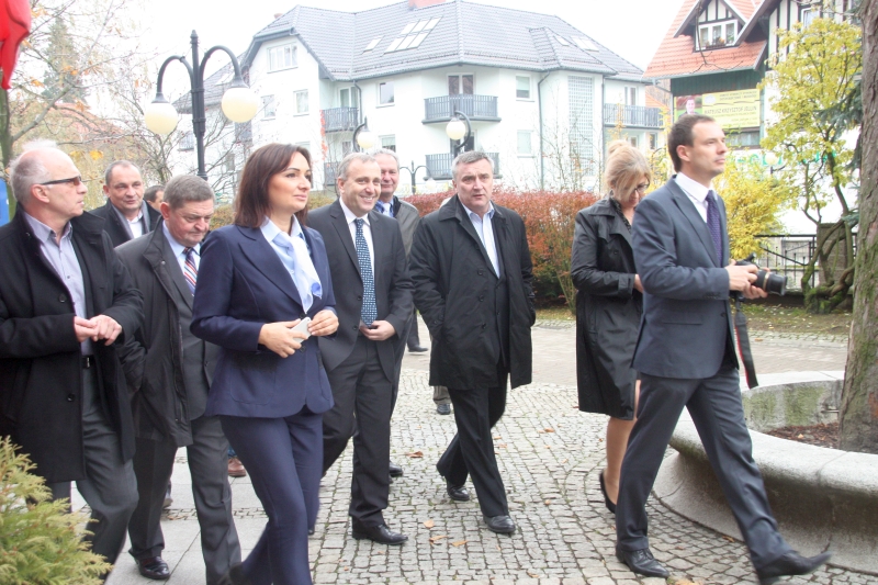 Podczas swojej wizyty na terenie Powiatu Kłodzkiego, Minister Spraw Zagranicznych odwiedził również Polanicę-Zdrój. Grzegorz Schetyna wysoko ocenił kierunek i szybkie tempo rozwoju naszego miasta, zapewniając jednocześnie o dalszym wsparciu dla regionu. Podczas krótkiego spaceru po Polanicy, minister odwiedził m.in. Teatr Zdrojowy, Park Zdrojowy oraz Deptak. Burmistrz Jerzy Terlecki przedstawił Grzegorzowi Schetynie duże możliwości naszego miasta w zakresie realizacji znaczących międzynarodowych wydarzeń konferencyjnych oraz omówił bogatą bazę hotelową niezbędną przy realizacji takich przedsięwzięć. Szef MSZ z zainteresowaniem przyjął możliwość organizowania w naszym mieście spotkań dyplomatycznych. W wizycie, Ministrowi SZ towarzyszyła posłanka Monika Wielichowska.