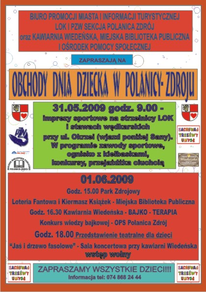 W dniach 31.05 i 01. 06 w Polanicy -Zdroju będą organizowane imprezy z okazji Dnia Dziecka.